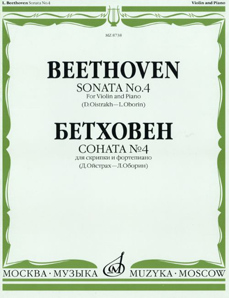 08738МИ Бетховен Л. Соната № 4: Для скрипки и фортепиано/Ред. Д.Ойстраха, Л.Оборина, Издат. «Музыка»