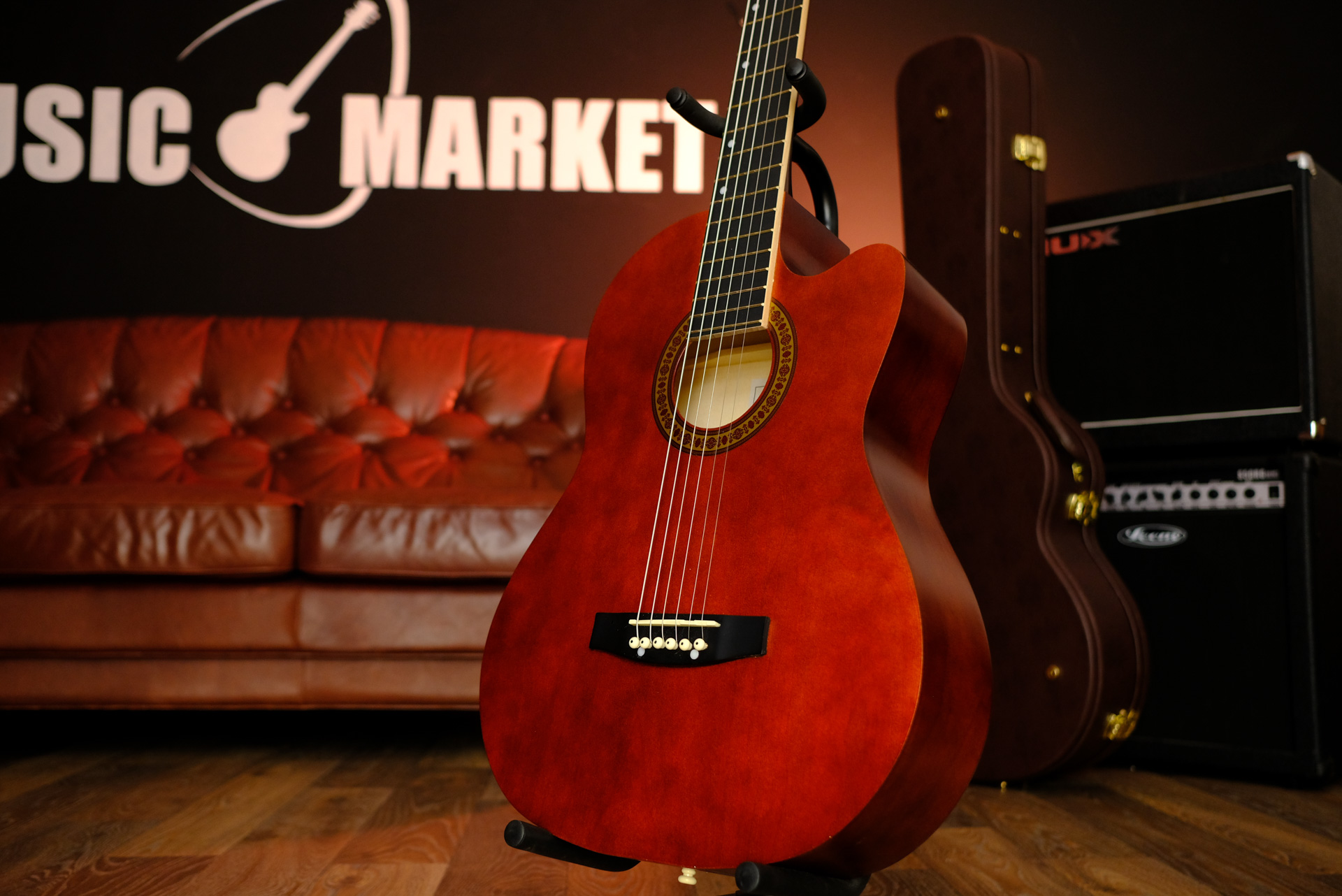 6-ти струнная акустическая гитары с вырезом - или "катавеем", как довольно часто его называют. Вырез бесспорно облегчает игру на верхних ладах. Струны - мягкие металлические, гриф - широкий: то что нужно для начинающего музыканта. Стоит отдельно отметить - внешний вид гитары - он великолепен! Гитара звучит красиво, обучаться на ней легко, цена «не кусается"". Рекомендуем для начинающих или в качестве подарка близкому человеку.