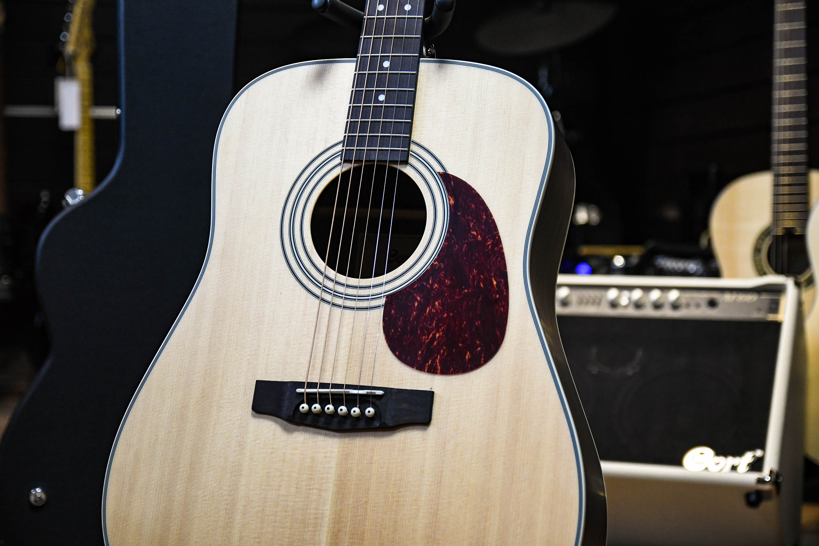 Earth80 является основой акустической линейки Cort на протяжении многих лет. Это полноразмерный дредноут с верхней декой из массива ситхинской ели, задней декой и обечайкой из композитного материала EvoRose, грифом из красного дерева с накладкой из овнкола, колковой механикой в винтажном стиле и струнами D'Addario EXP16.