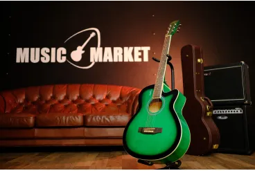 Elitaro E4010C GR – акустическая фолк гитара, комбинирующая в себе доступную стоимость вместе с лучшими материалами, включая идеально подобранную древесину и надежную фурнитуру. Кроме того, она создана учитывая все традиции и стандарты, и состоит из липового корпуса, отделанного в необычном, но привлекательном зеленом цвете, кленового грифа с комфортным для новичка профилем и палисандровой накладкой, которая в свою очередь имеет инкрустацию в виде белых точек. Далее она характеризуется высококачественной хромированной фурнитурой, где колки великолепно держат строй и могут быстро поменять его для соответствия выбранному исполняемому жанру. Итак, купив ее, у вас будет инструмент с насыщенным богатым звучанием, который прослужит долго, и каждый раз будет дарить еще больше удовольствия от игры.