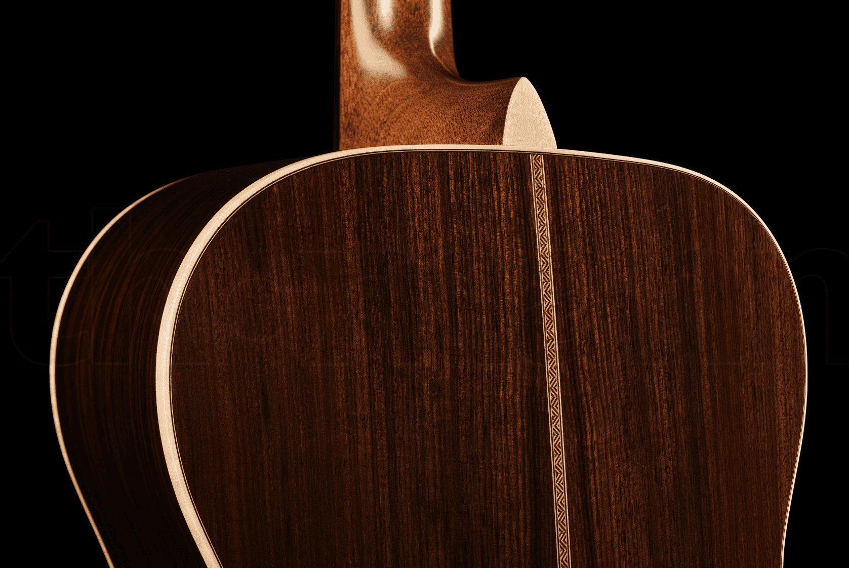 Внешний вид не похож ни на что из производственной линии Martin: окантовка из европейского огненного клена, стильные золотые лады, золотые колки с открытым механизмом и уникальный письменный логотип в стиле 1930-х годов, инкрустированный жемчугом на головке грифа. Некоторые современные особенности включают в себя штифты бриджа Liquidmetal® с красными точками и композитную пластину бриджа из углеродного волокна, которая увеличивает громкость, а также новую форму грифа, которая слегка асимметрична для максимального комфорта рук при движении вверх и вниз по грифу.