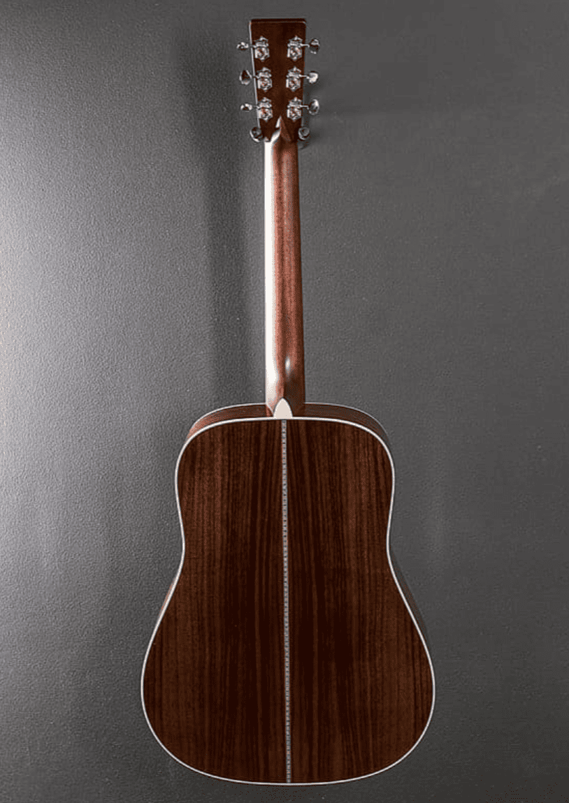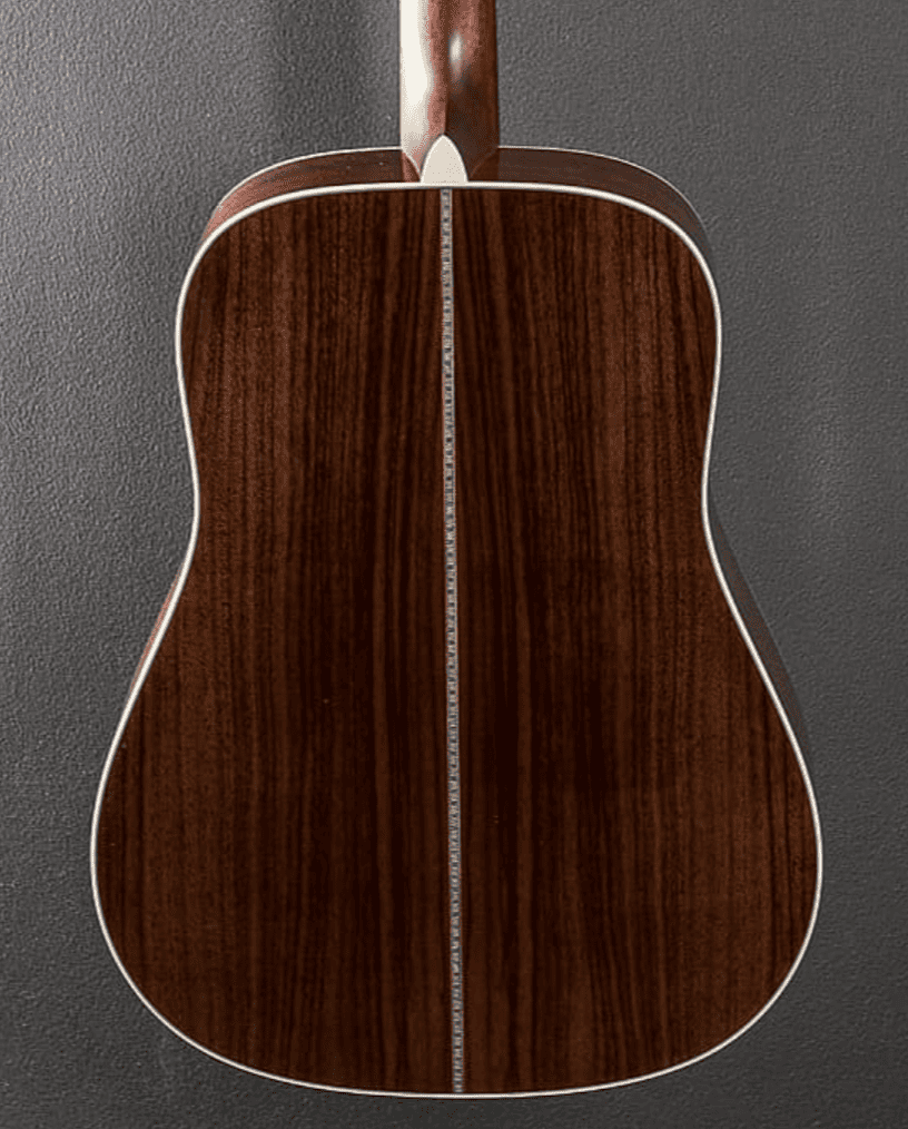 Гитара Martin Guitars HD-28 из серии Standard обладает глянцевым корпусом Dreadnought с X-образной скобой внутри со смещением вперед. Верхняя дека из ели, украшенная пикгардом с узором черепахового панциря, а также спинка и обечайка из восточно-индийского палисандра имеют натуральную отделку. Гладкий гриф из красного дерева с профилем Modified Low Oval соединён с кузовом креплением «ласточкин хвост» на уровне четырнадцатого лада. Накладка из чёрного дерева оснащена мензурой 25,4 дюймов и 20 ладами с инкрустацией в виде точек. Благодаря такому сочетанию современных технических решений с тоновой древесиной модель воспроизводит мощные нижние частоты и насыщенный тембр.