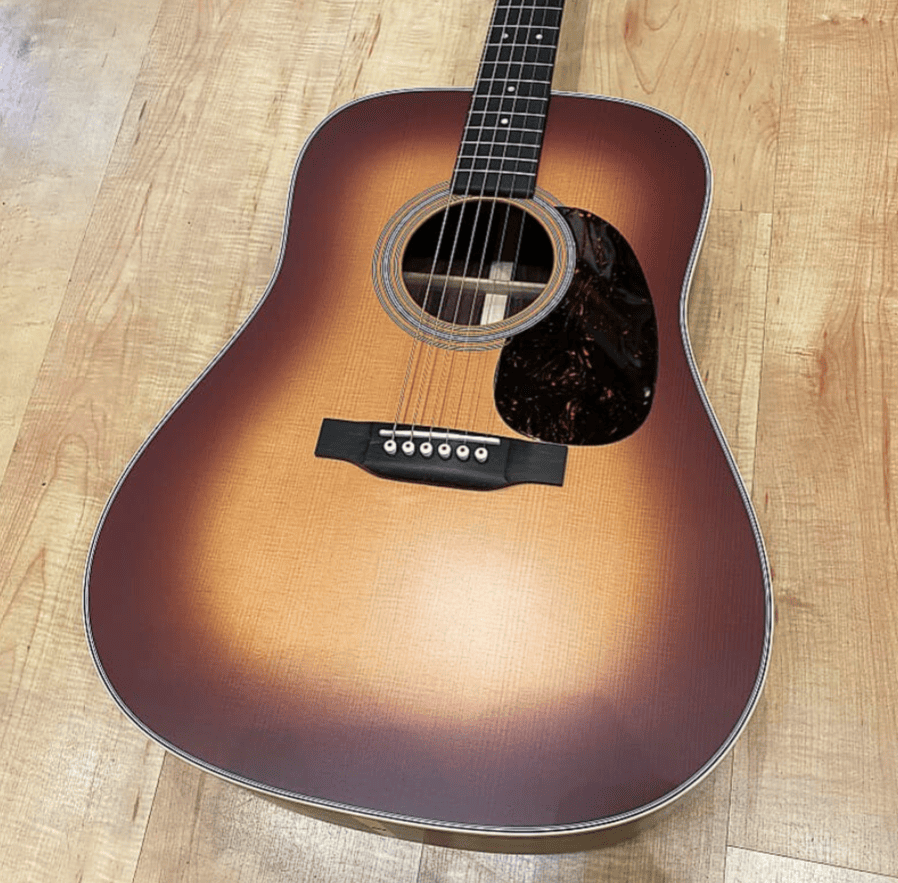 Martin Guitars D-28 Satin Amberburst — улучшенная версия легендарной гитары 50-60-х годов, на которой в своё время играли такие исполнители, как Хэнк Уильямс, The Beatles, Джонни Кэш, Нил Янг и Боб Дилан. Модель в сатиновой отделке Satin Amberburst отличается сочетанием винтажных деталей — открытые колки, состаренные белые акценты и пикгард с узором черепашьего панциря — с современными функциями, такими как обновлённый профиль грифа. При этом корпус изготовлен из палисандра с верхней декой из ели, что наделяет инструмент резонансным звучанием с глубокими басами и насыщенными обертонами. Гитара также дополнена пружинами, смещенными вперёд, чтобы обеспечить большую вибрацию верхней части.