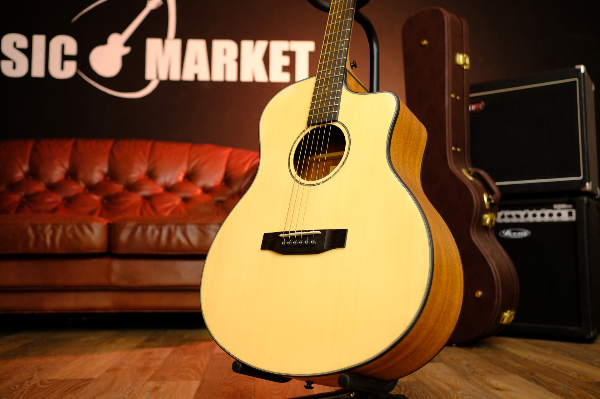 Обладая большим резонансным корпусом из ели и махагони, она поможет любой сыгранной вами композиции приобрести некий шарм, а издаваемый ею уровень громкости позволит выступать в небольшом помещении без использования аппаратуры.