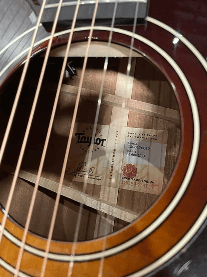 Другие отличительные элементы дизайна включают изготовленную на заказ розетку с двойным кольцом и переплет из зернистой слоновой кости, дополненный верхним покрытием Tobacco Sunburst.