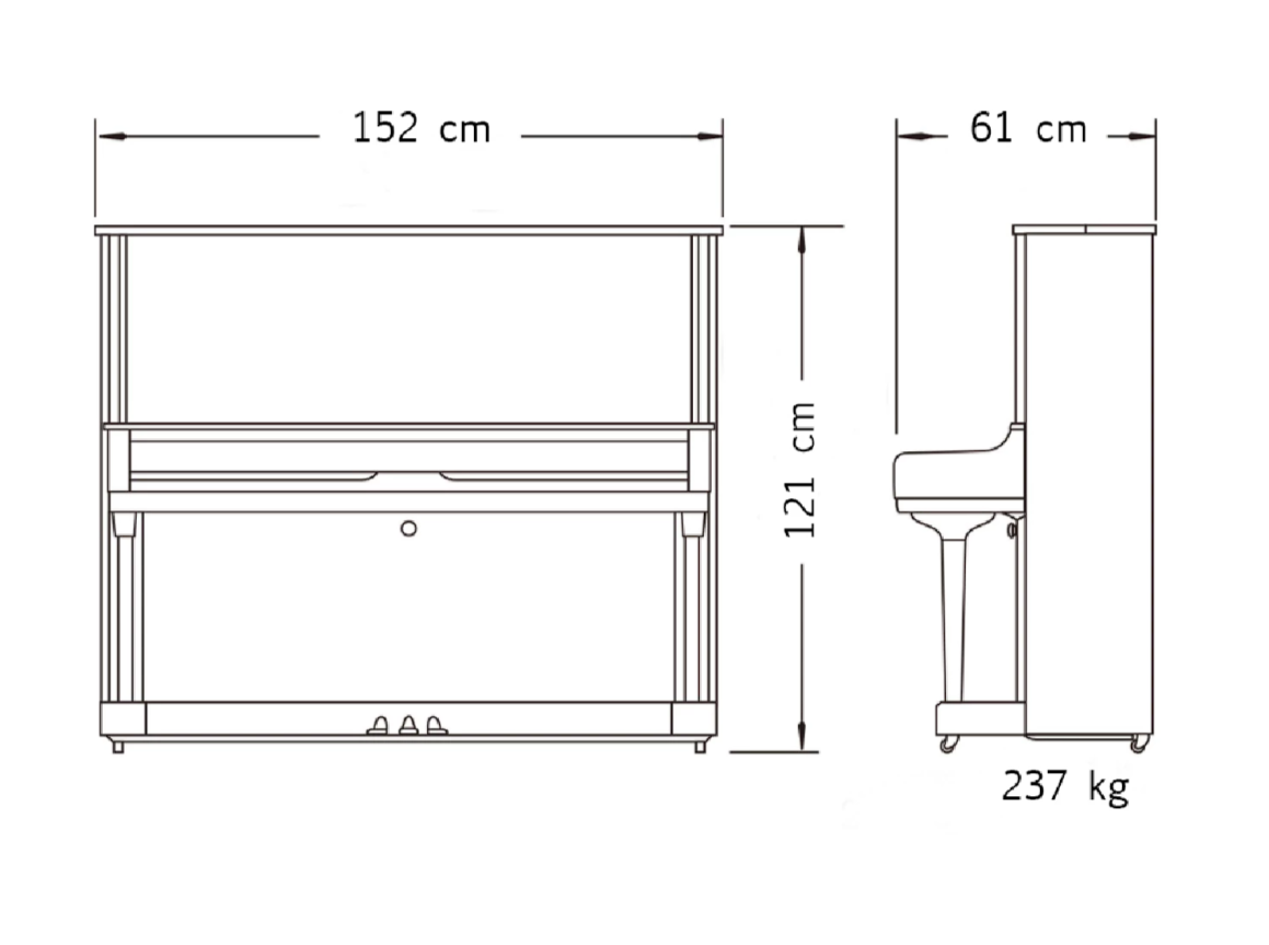 Благодаря высоте 121 см, цельной еловой деке с высококачественным лаковым покрытием и 5 скелетным балкам сзади звучание B121 богатое и глубокое.