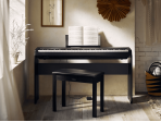 Цифровое пианино Ямаха P-45 уже успело стать культовой моделью, и это легко объяснимо. Его невысокая цена и небольшой вес отлично сочетаются с достаточно насыщенным и реалистичным звуком. Пианино очень компактно, модель легко устанавливается на стандартную деревянную или крестовую металлическую стойку. При этом клавиатура достойна отдельной похвалы – 88 полноразмерных клавиш и абсолютно потрясающая чувствительность! Здесь есть 4 уровня, можно настраивать чувствительно от жесткой до самой мягкой. Можно смело говорить, что эта модель абсолютно универсальна – благодаря компактности, высококлассному звучанию и возможности менять тембры, её безусловно можно рекомендовать для обучения музыке пианисту любого возраста.