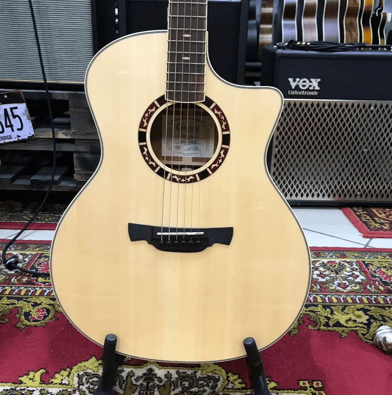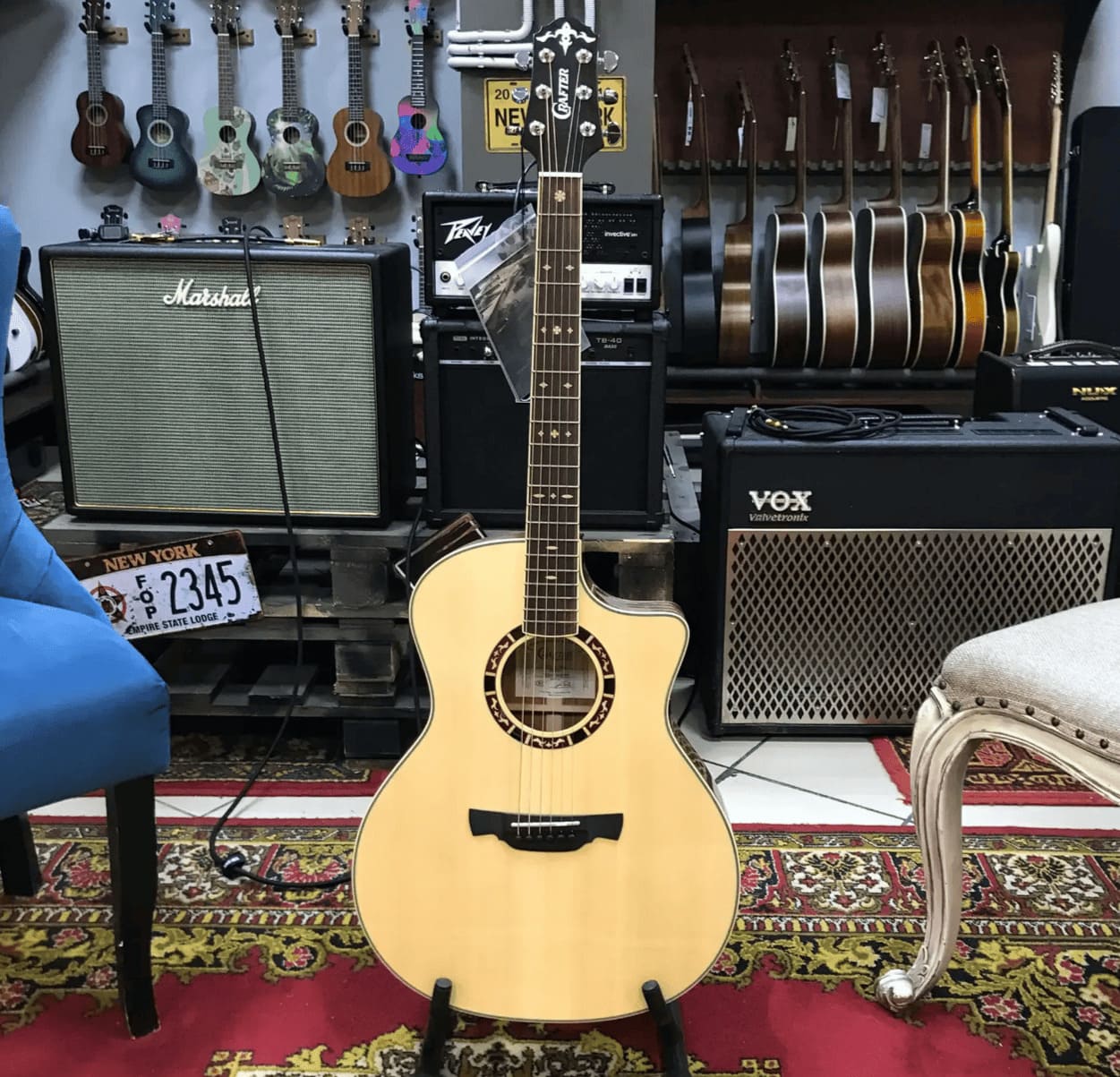 Гитара CRAFTER STG G-16ce имеет форму корпуса «Grand Auditorium», одну из самых популярных форм среди акустических гитар. Эти корпуса характеризуются несколько меньшим размером, чем дредноут, однако многие гитаристы считают их более удобными и сбалансированными по частотам, хотя и не таким громкими.