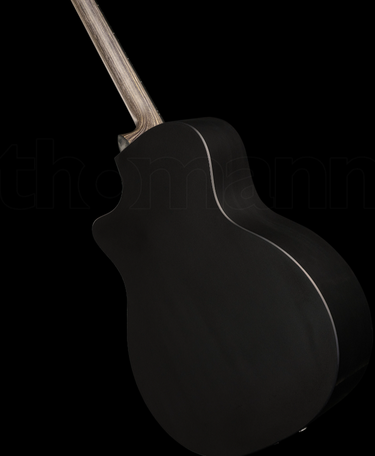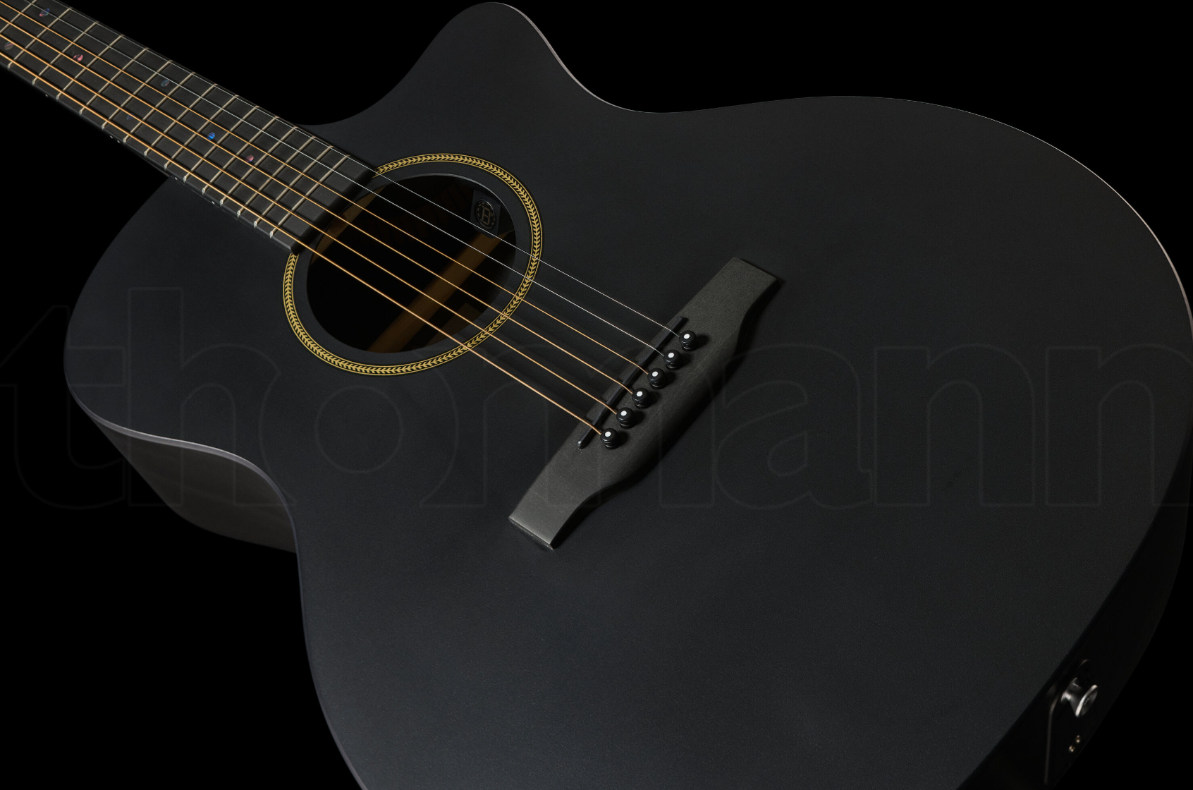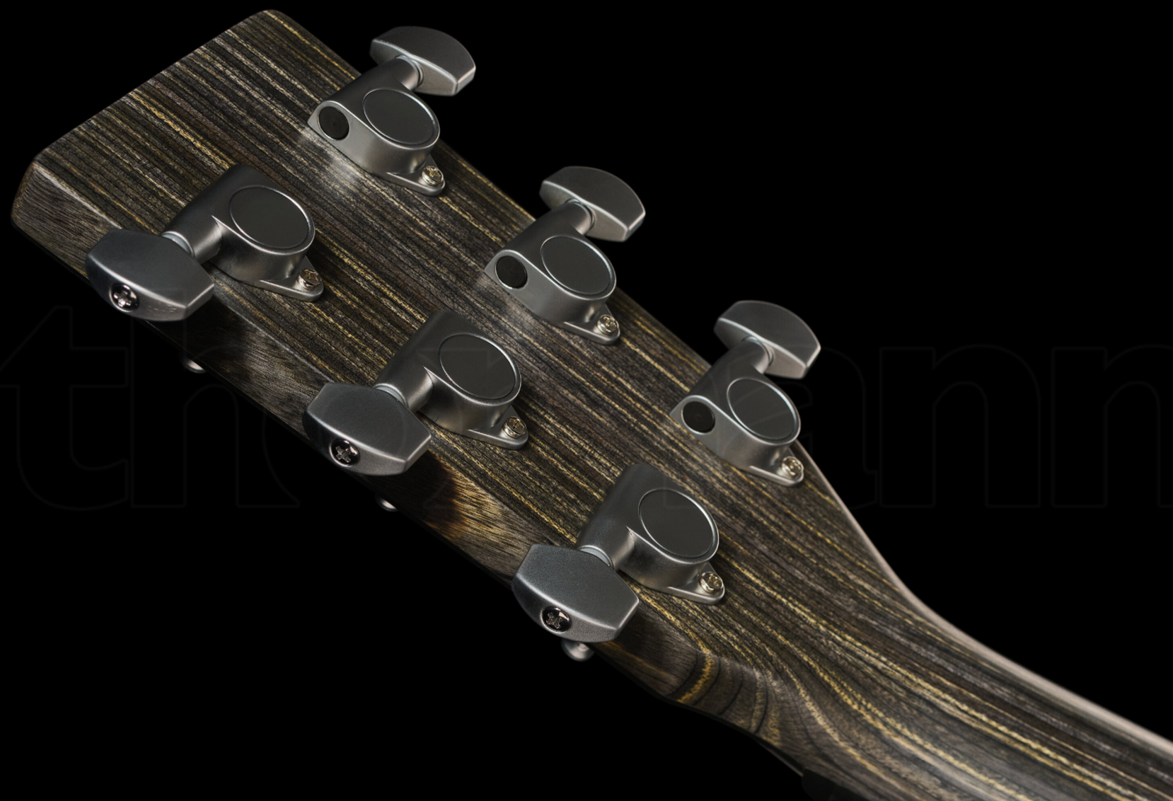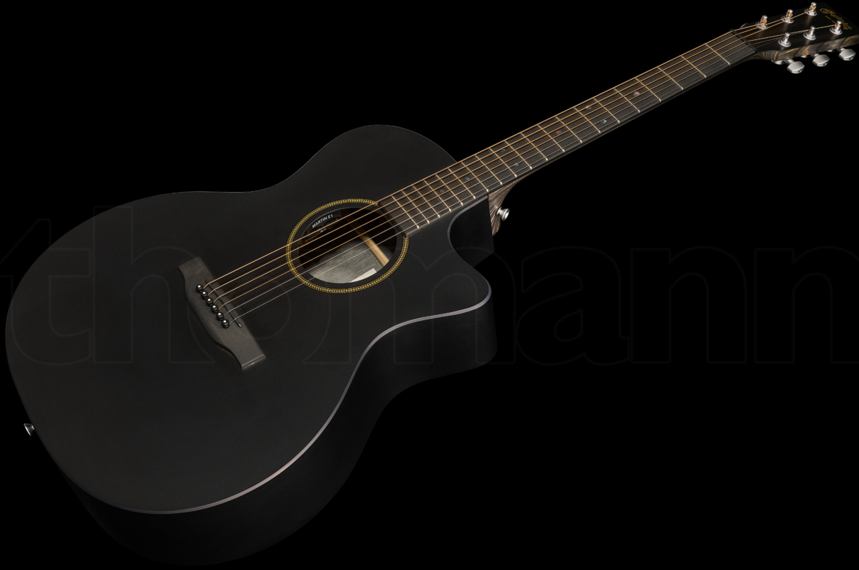 Гитара Martin Guitars GPC-X1E в чёрной отделке обладает корпусом Grand Performance из ламината высокого давления, дополненным вырезом для удобного доступа к верхнему регистру. Гриф из ламината берёзы соединён с кузовом с помощью шипа на уровне четырнадцатого лада. Накладка из ричлайта оснащена мензурой 25,4 дюйма, верхним порожком из чёрного кориана шириной 44,5 дюйма и 20 ладами с инкрустацией в виде точек.