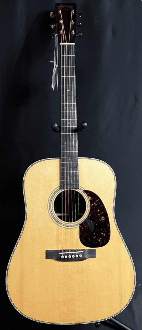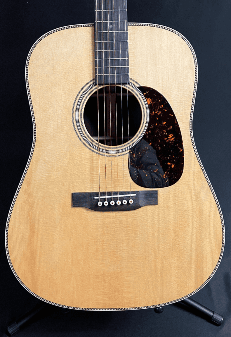 Гитара Martin Guitars HD-28E обладает глянцевым корпусом Dreadnought с X-образной скобой внутри со смещением вперед. Верхняя дека из ели, украшенная пикгардом с узором черепахового панциря, а также спинка и обечайка из восточно-индийского палисандра имеют натуральную отделку. Гладкий гриф из красного дерева с профилем Low Oval соединён с кузовом креплением «ласточкин хвост» на уровне четырнадцатого лада. Накладка из чёрного дерева оснащена мензурой 25,4 дюймов и 20 ладами с инкрустацией абалоном. Благодаря такому сочетанию современных технических решений с тоновой древесиной модель воспроизводит объёмное и резкое звучание с ярким басом и серединой и ровным откликом на всех частотах.