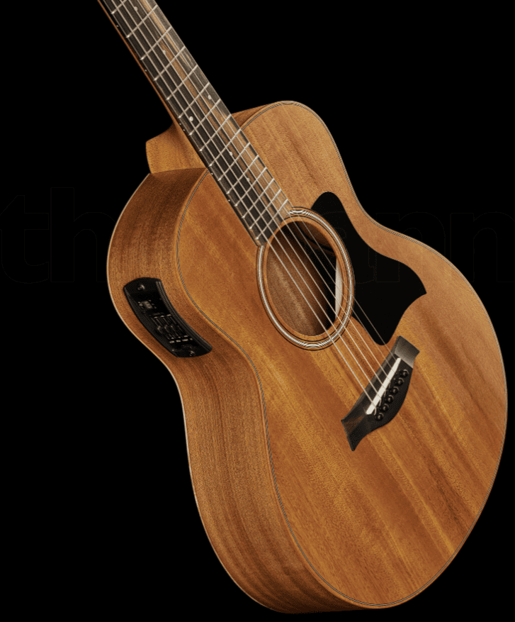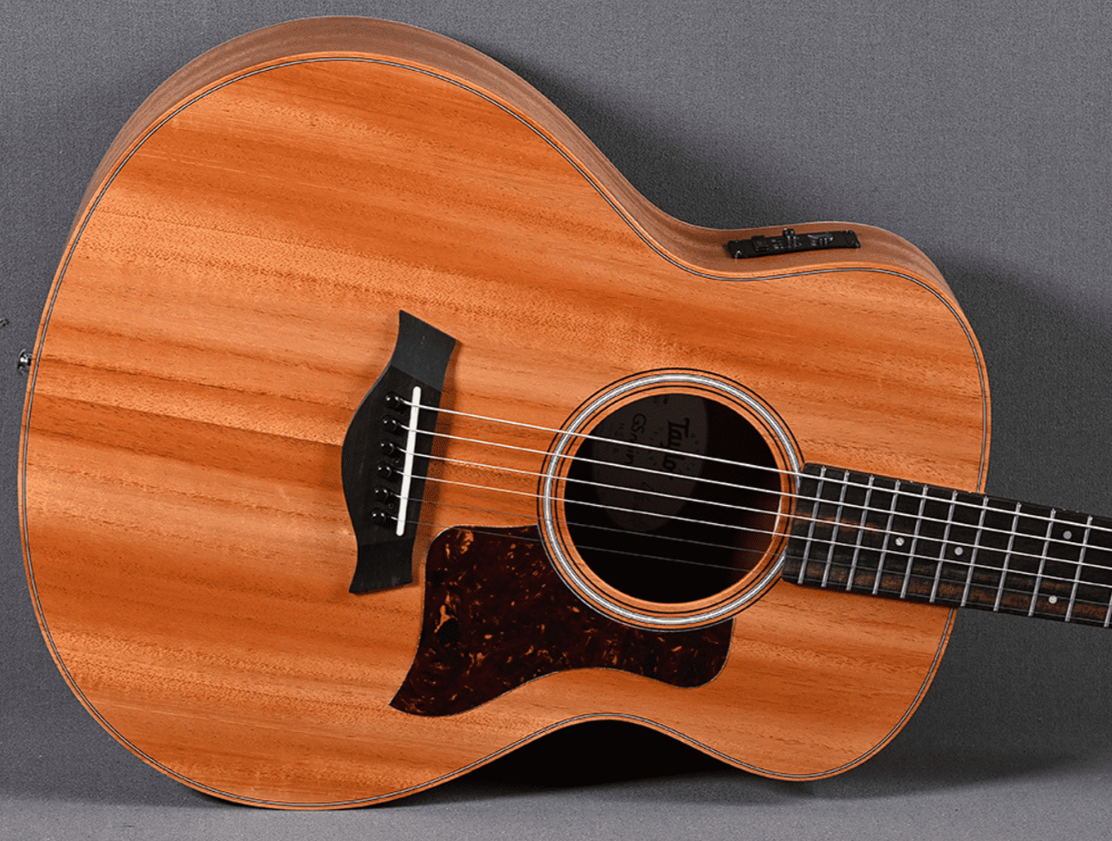 Гитара GS Mini-e Mahogany имеет уменьшенный корпус Grand Symphony в матовой отделке натурального цвета с пикгардом из чёрного пластика. Модель обладает верхней декой из красного дерева, многослойной спинкой и обечайкой из сапеле, что обеспечивает насыщенный среднечастотный звук с достаточной проекцией для джемов с друзьями и живых выступлений. Изящный дизайн грифа Taylor облегчает настройку и оснащён накладкой из чёрного дерева с укороченной мензурой 23,5 дюйма. Встроенный звукосниматель ES-B с удобным цифровым тюнером гарантирует чистое и естественное усиленное звучание.