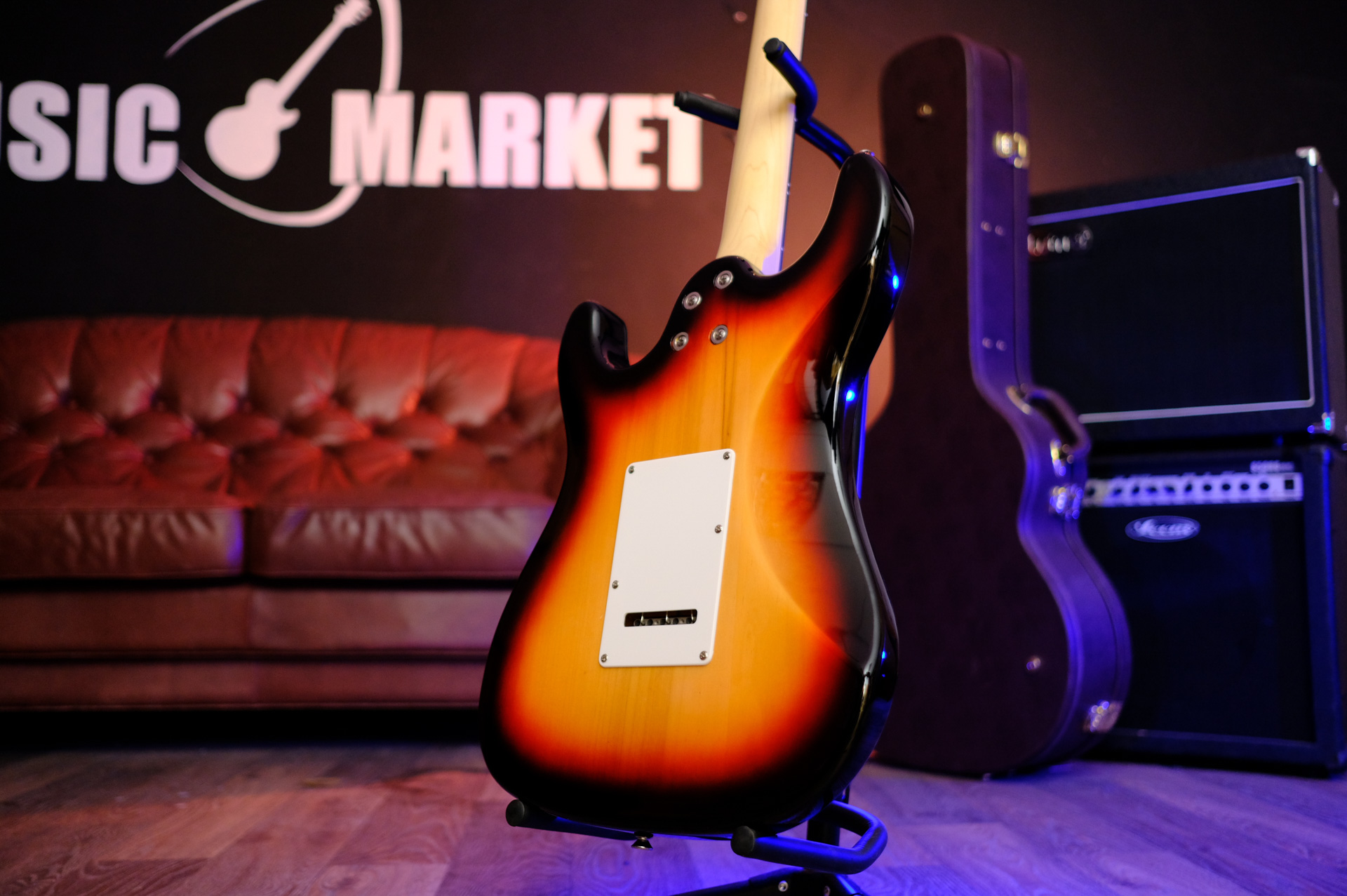 Бюджетный стратокастер Aria STG STV от японской компании ARIA GUITARS представляет собой на удивление качественную и универсальную электрогитару. Корпус изготовлен из липы, гриф – клён с палисандровой накладкой. Конфигурация звукоснимателей отличается от традиционной «стратовской» схемы – здесь установлены два сингла и один хамбакер с отсечкой в бриджевой позиции. При столь низкой стоимости, ARIA STG-STV радует добротностью сборки и приятным звучанием как на чистом звуке, так и с перегрузом. Рекомендуем начинающим гитаристам в качестве первого инструмента!