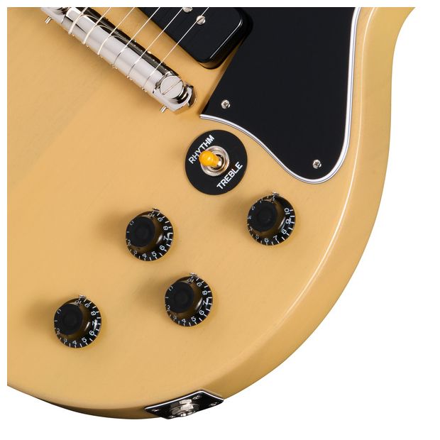 Звукосниматели Gibson Custom USA P-90 Soapbar. Ручки раздельной тона и громкости. Инструмент дополнен Historical Wraparound бриджем, Epiphone Deluxe колками, никелированной фурнитурой. В комплект входит фирменный кейс.