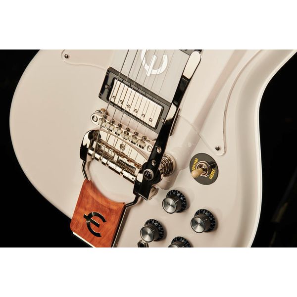Crestwood Custom оснащена вклеенным грифом из красного дерева со средним профилем C, накладкой из индийского лавра радиусом 12 дюймов, 22 лада Medium Jumbo и овальные вставки Epiphone, 2 регулятора громкости и 2 регулятора тембра с потенциометрами CTS и бридж Epiphone LockTone Tune-O-Matic с седлами Graph Tech TUSQ и струнодержателем Tremtone с вибрато.