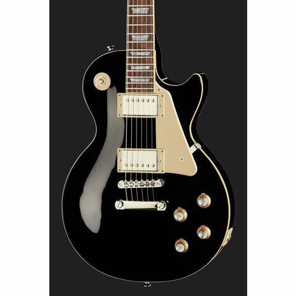 Гитара Epiphone Les Paul Standard '60s в чёрной отделке имеет корпус Les Paul из красного дерева с топом из огненного клёна сорта АА. Вклеенный гриф из красного дерева обладает тонким профилем SlimTaper «С» образца 1960-х годов, который удобно лежит в руке. Накладка из лавра оснащена 12-дюймовым радиусом для облегчения изгибов струн, мензурой 24,75 дюйма и 22 средними ладами с перламутровой инкрустацией в виде трапеций.