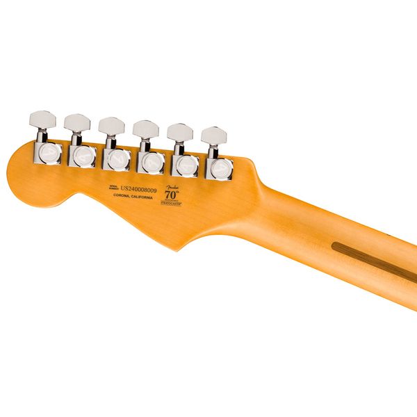 Гитара Fender Am Ultra II Strat MN SRD в красной отделке с глянцевым покрытием обладает корпусом Stratocaster из отборной ольхи. Кленовый гриф на болтах усилен анкерным стержнем Bi-Flex и имеет усовершенствованный профиль Modern «D», который удобно лежит в руке. Накладка из клёна оснащена универсальной мензурой 25,5 дюйма, составным радиусом 10-14 дюймов для комфортной игры и 22 ладами среднего размера с перламутровой инкрустацией белыми точками шириной 7 мм.