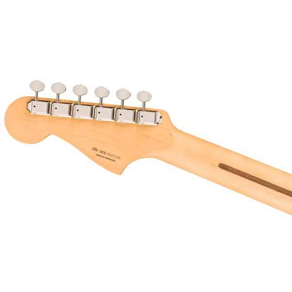 Два сингла Player Series Jazzmaster с магнитами Alnico 5 воспроизводят чистые высокие тона, музыкальные средние частоты и плотные басы, подходящие для любого жанра. Управление звуком возможно через 3-позиционный переключатель датчиков, ручку громкости и регулятор тона. Модель дополнена верхним порожком из искусственной кости, белыми маркерами на боковой части грифа, колками Fender ClassicGear, бриджем Jazzmaster с сёдлами Mustang, 3-слойным пикгардом цвета пергамента, а также никелированной и хромированной фурнитурой.