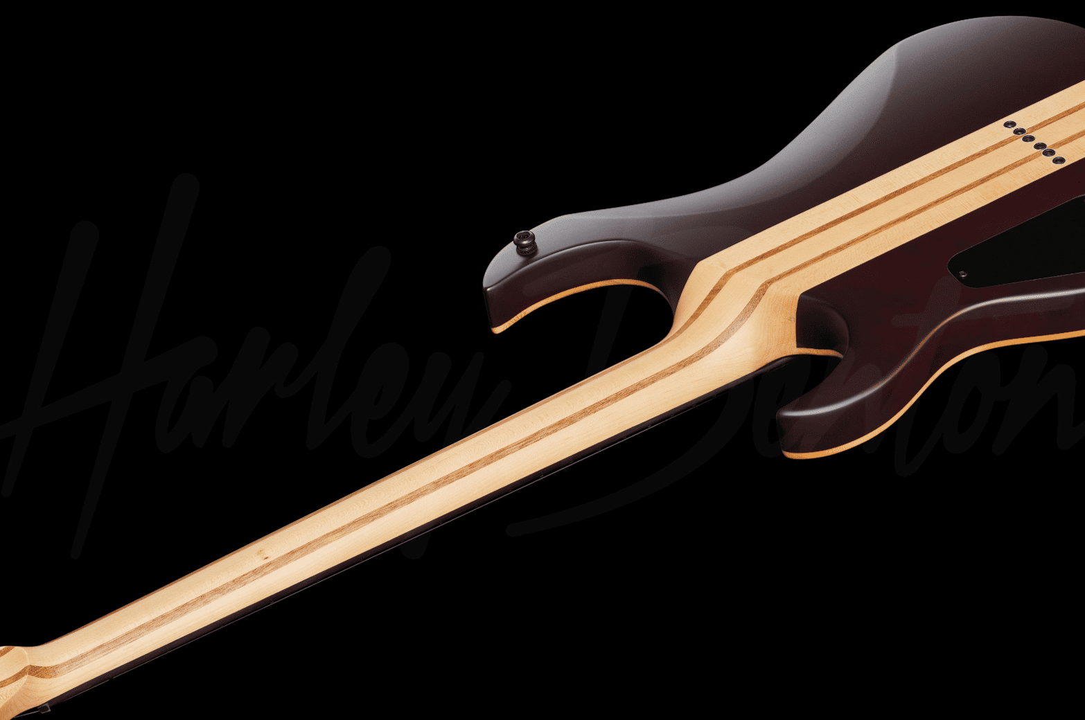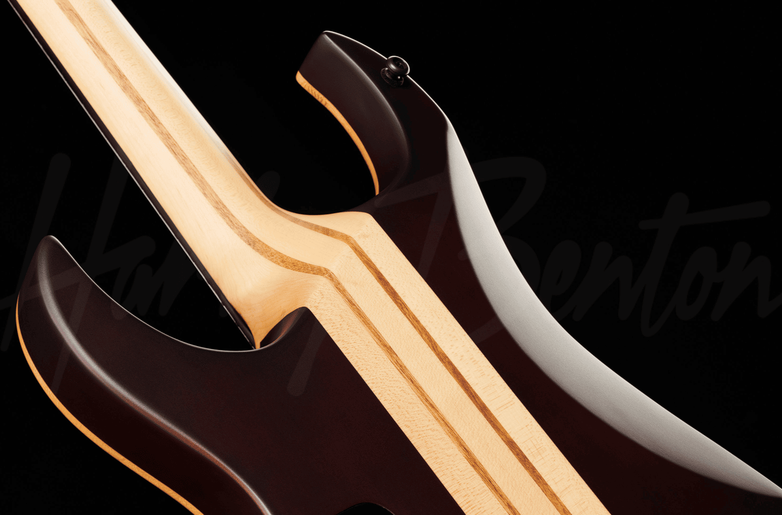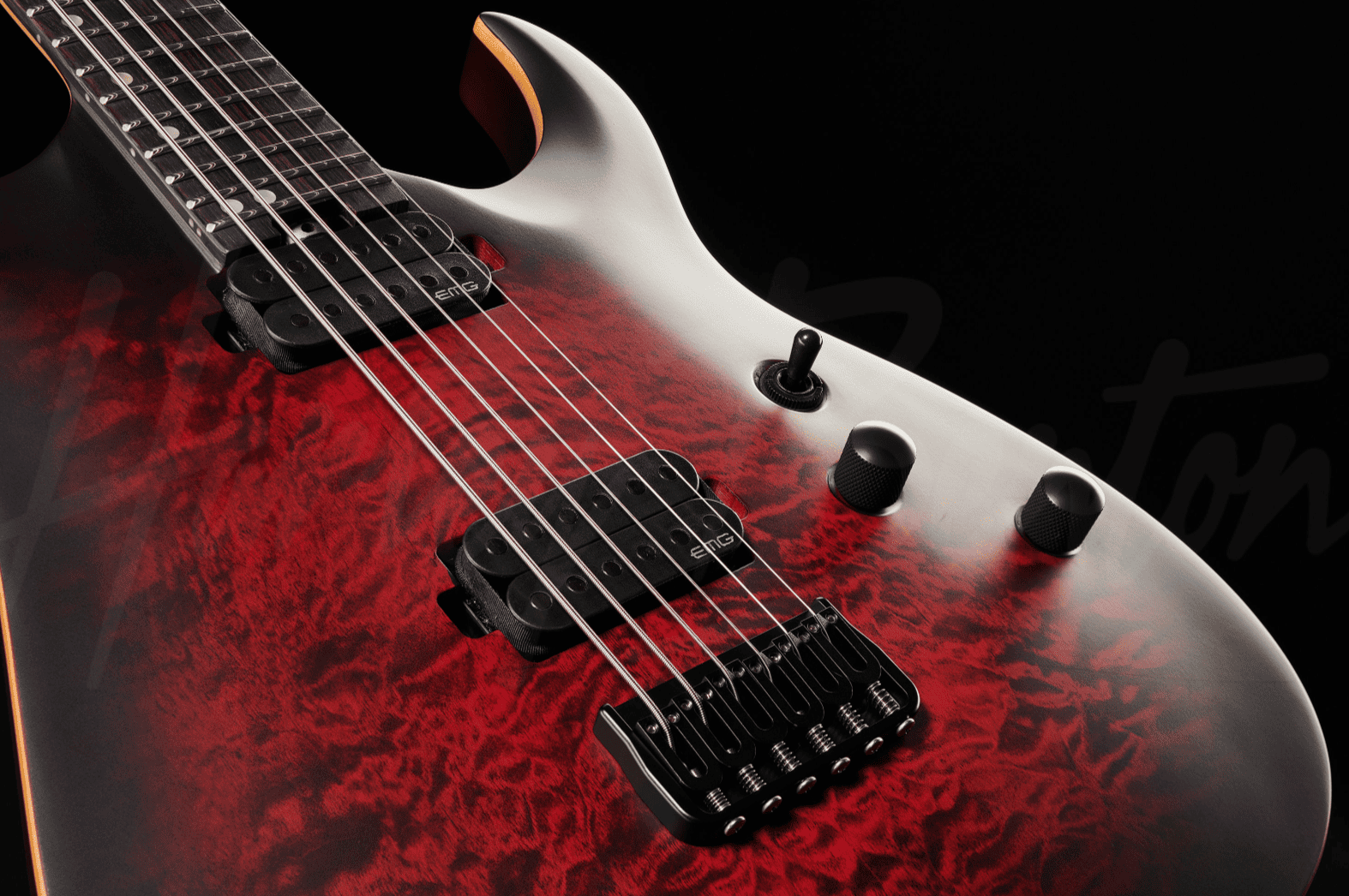 Гитара Harley Benton Amarok-BT в отделке Black Red Quilted Burst имеет деку из красного дерева и винир топом из клена. Сквозной гриф из 5и кусков клена и красного дерева с профилем Slim Modern C. Накладка из черного дерева радиусом 14 дюймов оснащена баритон мензурой 27 дюймов, 24 стальных Jumbo лада от компании Blacksmith и инкрустацией в виде белых точек, смещенных к краю накладки.