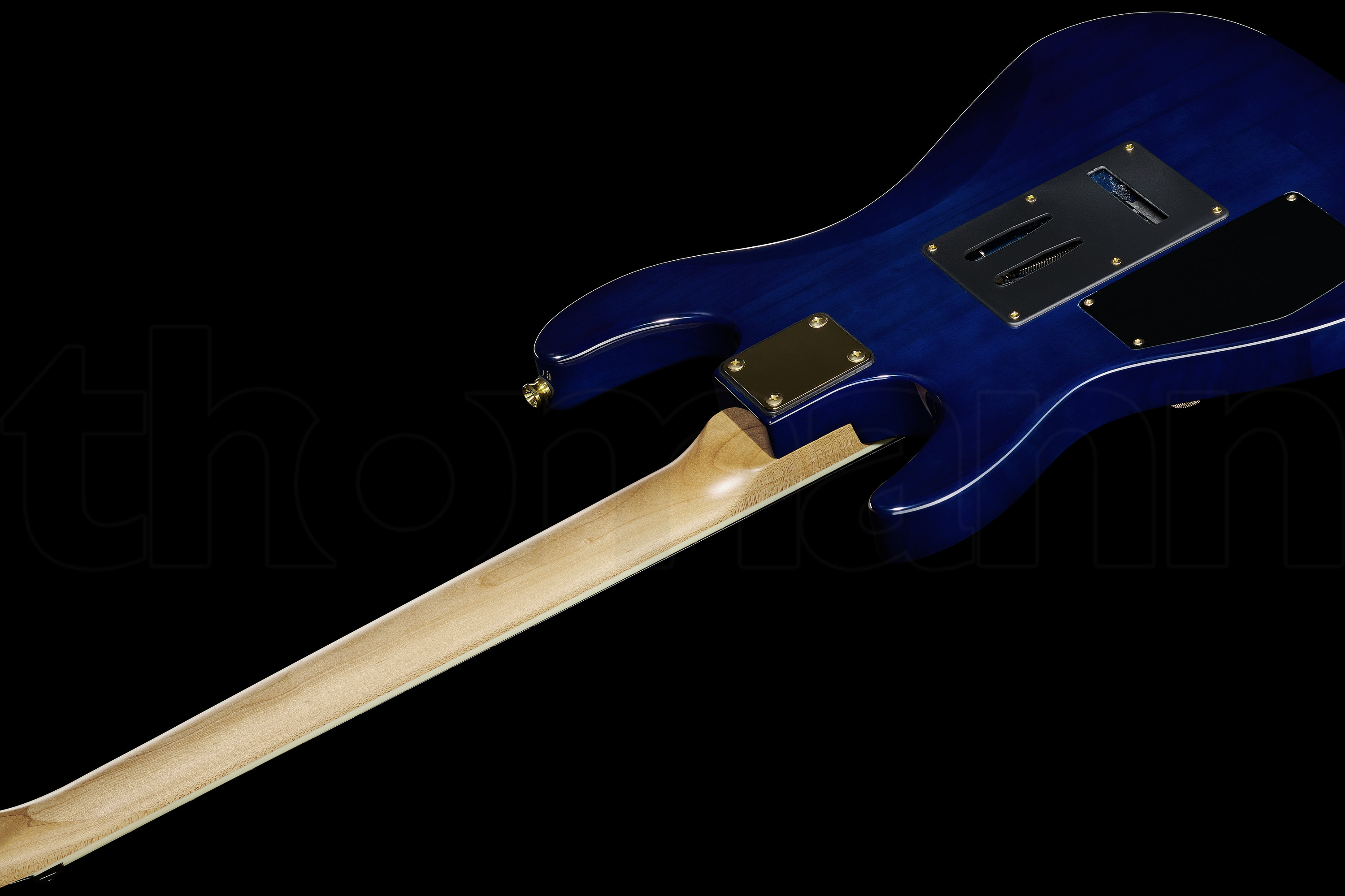 Если вы в поисках электрогитары для рок-музыки и металла с уникальным соотношением цены и качества, вам точно нужно задержать свое внимание на Harley Benton S-620 TB Rock. Чего стоит только внешний вид: липовый корпус с резным верхом в форме ST интересно демонстрируется через полупрозрачный синий цвет. Глянцевая отделка — как ягодка на торте, а оборудование – покрытая золотом «присыпка».