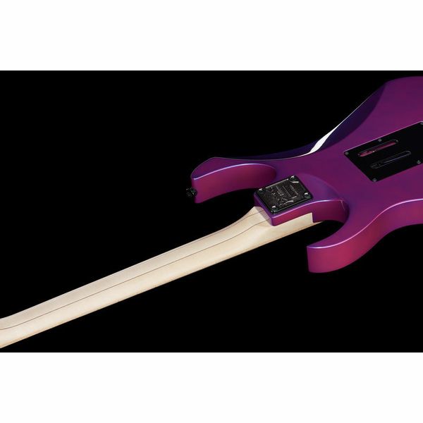 Гитара Ibanez Genesis RG550-PN в яркой отделке Purple Neon обладает корпусом из липы в стиле Superstrat, украшенным контрастным чёрным пикгардом. Более заострённые «рога» и глубокие вырезы делают доступ к верхнему регистру комфортным. Гриф с профилем Super Wizard состоит из пяти частей клёна и ореха и гарантирует плавность игры. Кленовая накладка оснащена плоским радиусом 16,9 дюйма, универсальной мензурой 25,5 дюйма и 24 ладами со вставками в виде чёрных точек.