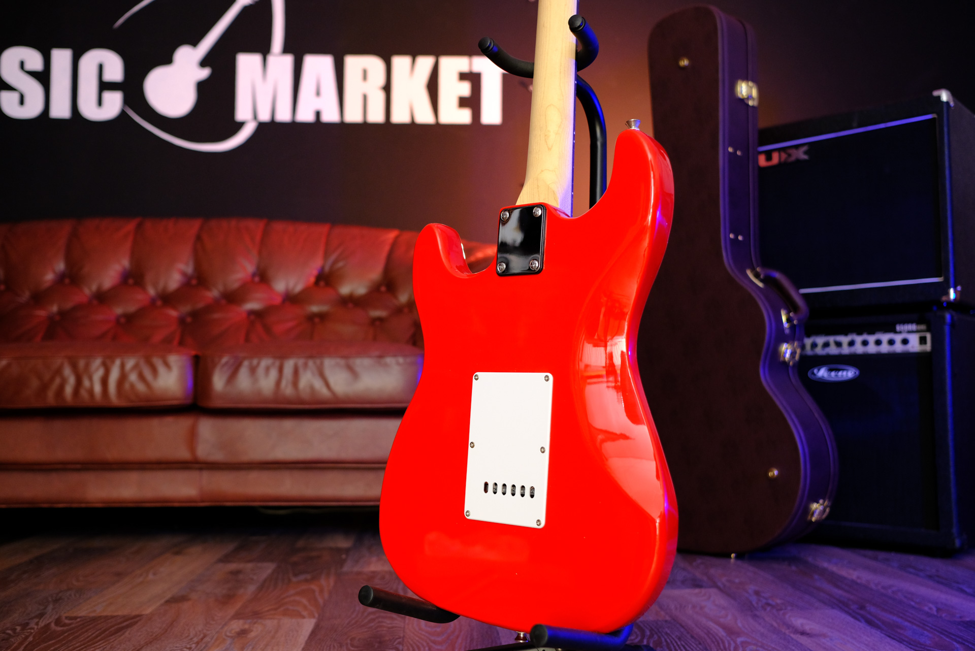 Рассматривая электрогитару ROCKET ST-01 хочется прежде всего отметить, что в соотношении качество / цена это достойный вариант для начинающих. Стратокастер выполнен из липы, как и большинство электрогитар начального сегмента, так как эта древесина считается универсальной под все стили игры и поможет определится музыканту с тем, в каком направлении двигаться дальше. Кроме того, наличие трёх синглов так же дадут понять разницу в звуке на разных позициях. Однако, хотелось бы предупредить, что мы рекомендуем сразу поменять струны на новые, так как заводской комплект сильно подвержен коррозии и ""стиранию"" об лады. После этого, гитара будет петь более чистым голосом.