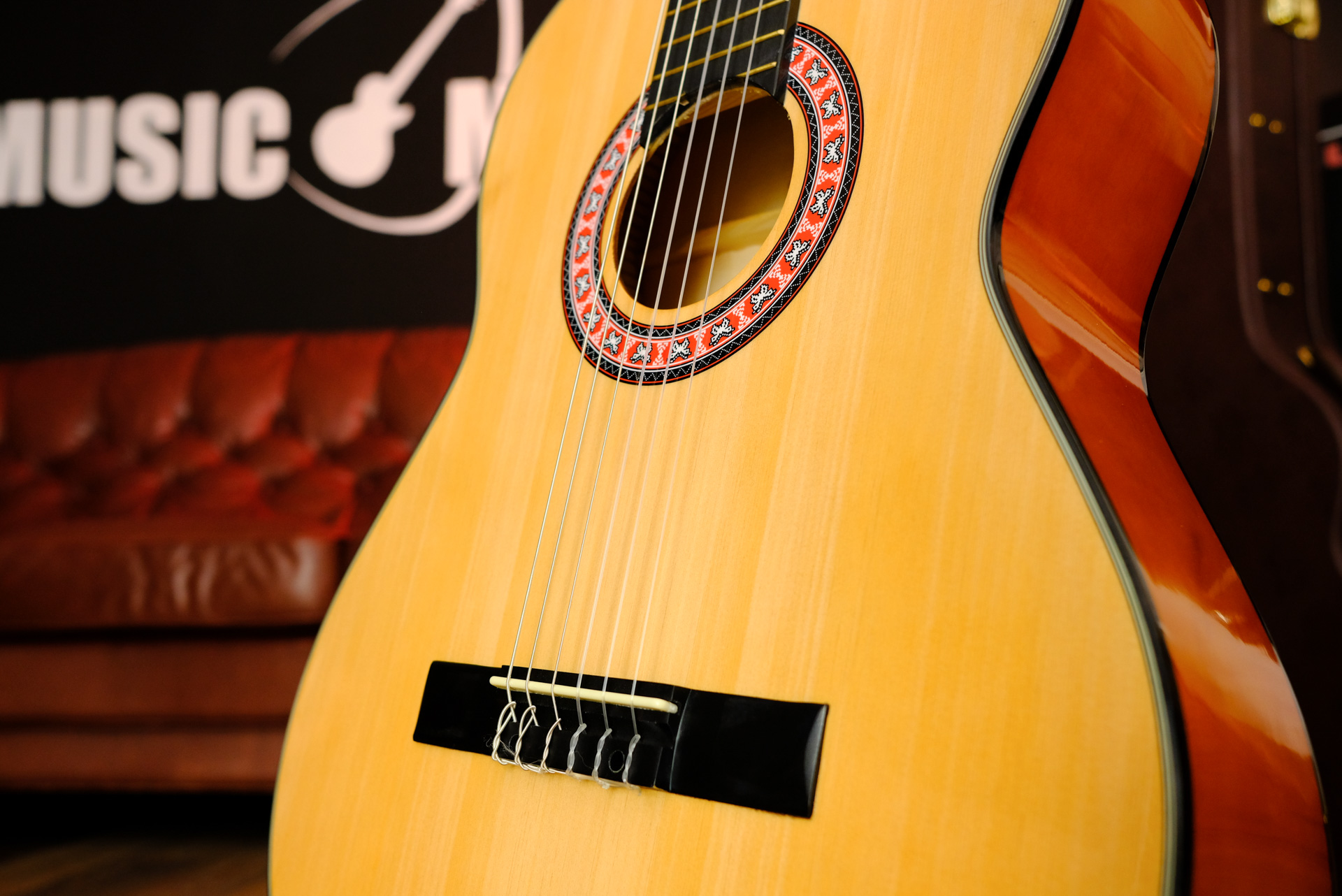 Классическая 6-струнная гитара 4/4 натурального цвета. Гитара начального уровня с нейлоновыми струнами, подойдет для обучения в музыкальной школе или кружке.