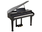 В конструкции рояля есть закрывающаяся крышка. В открытом состоянии она даёт отражение звука динамиков и создаёт объёмное кабинетное звучание вокруг музыканта и за его спиной. А если Вы подзвучиваете инструмент колонками, то крышку можно закрыть, чтобы инструмент занимал меньше места и исполнителя было видно со всех сторон. В отличии от стандартных огромных роялей, серия Grand 120 немного уменьшенная, так что такую модель можно поставить даже дома.