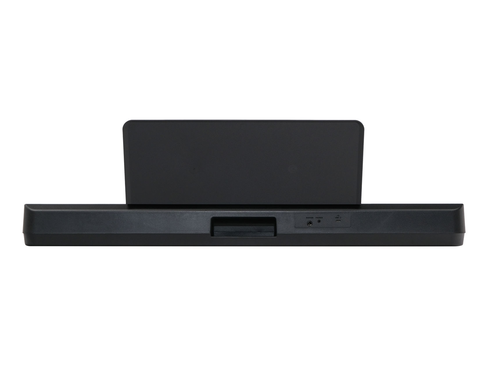 Разъемы подключения внешних устройств: вход питания USB-C, выход подключения наушников, вход AUX, гнездо подключения педали сустейна.