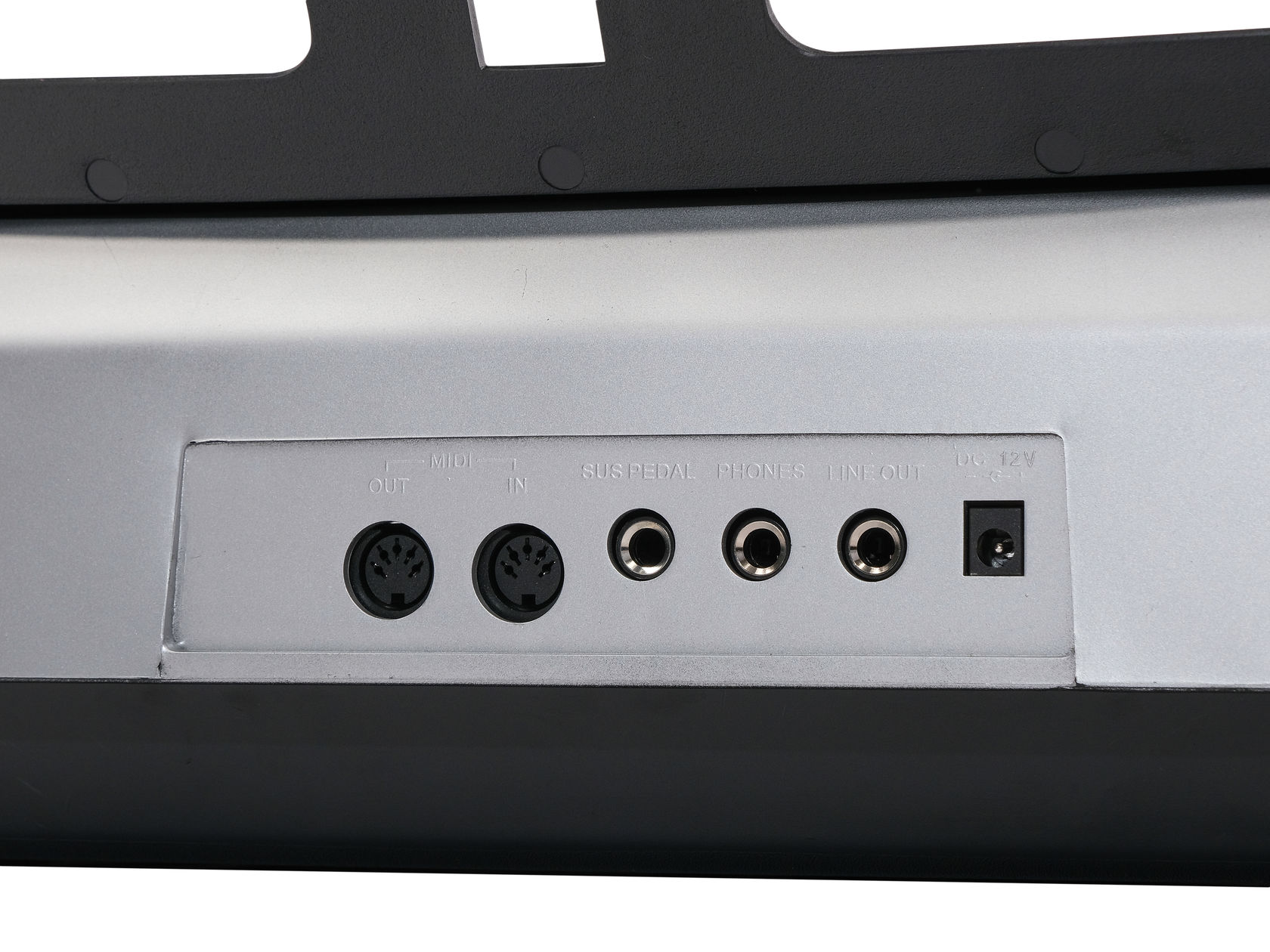 Подключения: разъем питания, разъем подключения наушников, разъем линейного выхода, разъем подключения педали сустейна, входной/выходной разъем MIDI.