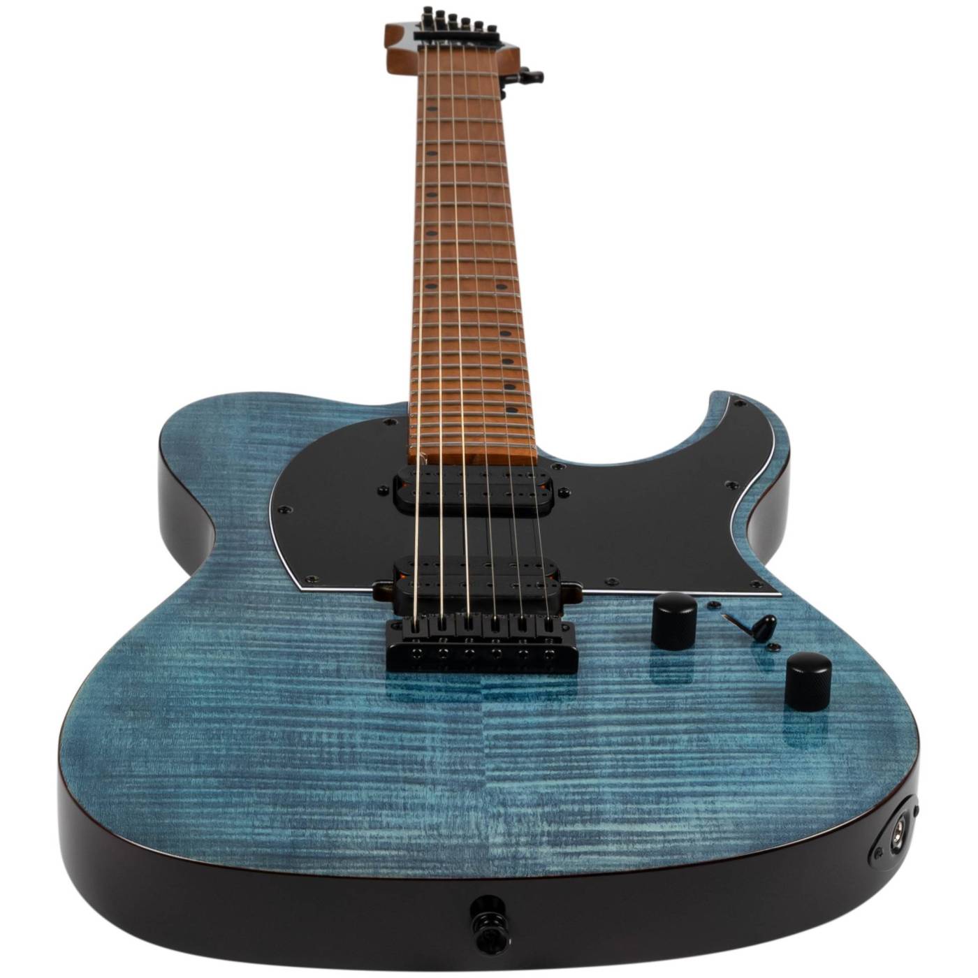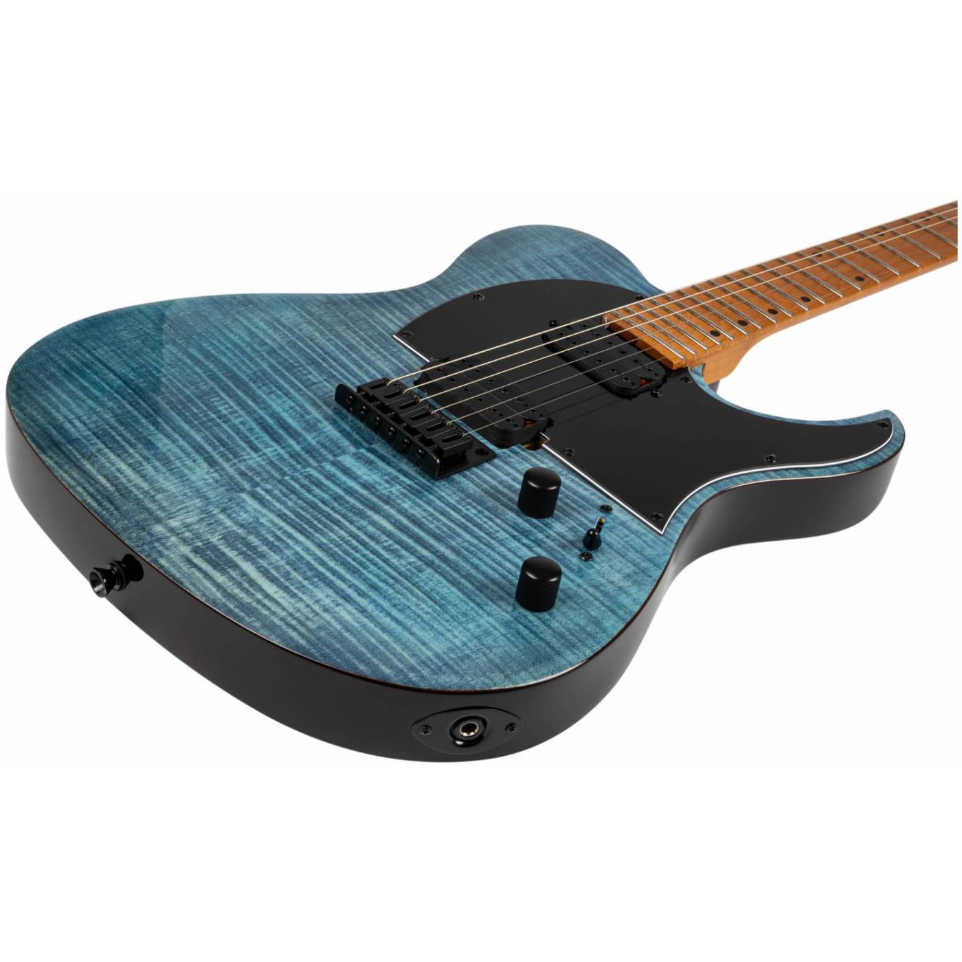 T-450, выполненная в прозрачном синем цвете, через который видна структура топа из огненного клена в сочетании с корпусом из запеченного тополя и грифом из канадского запеченного клена. Накладка грифа Ebony Tech, оснащенная 24 ладами Jumbo, обеспечивает плавную и отзывчивую игру, подходящую для различных сложных техник.