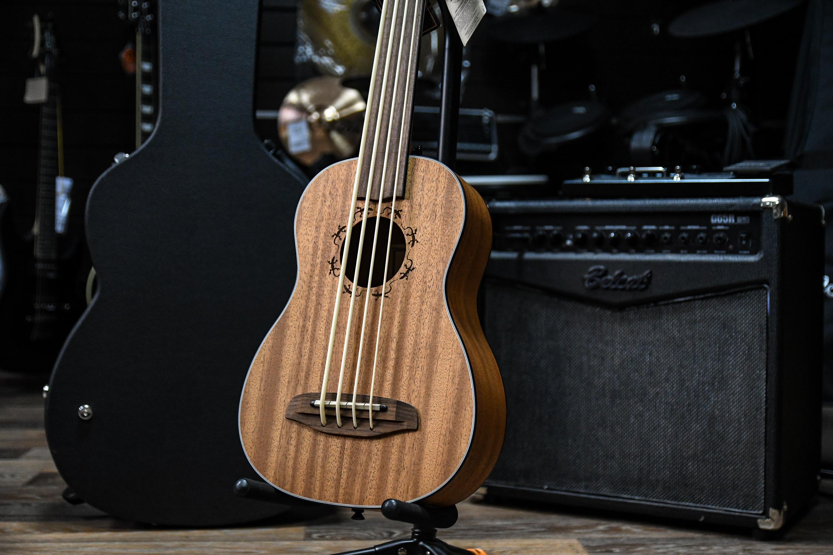 Укулеле бас со звукоснимателем, безладовое Ortega Lizard Series LIZZY-BSFL-GB