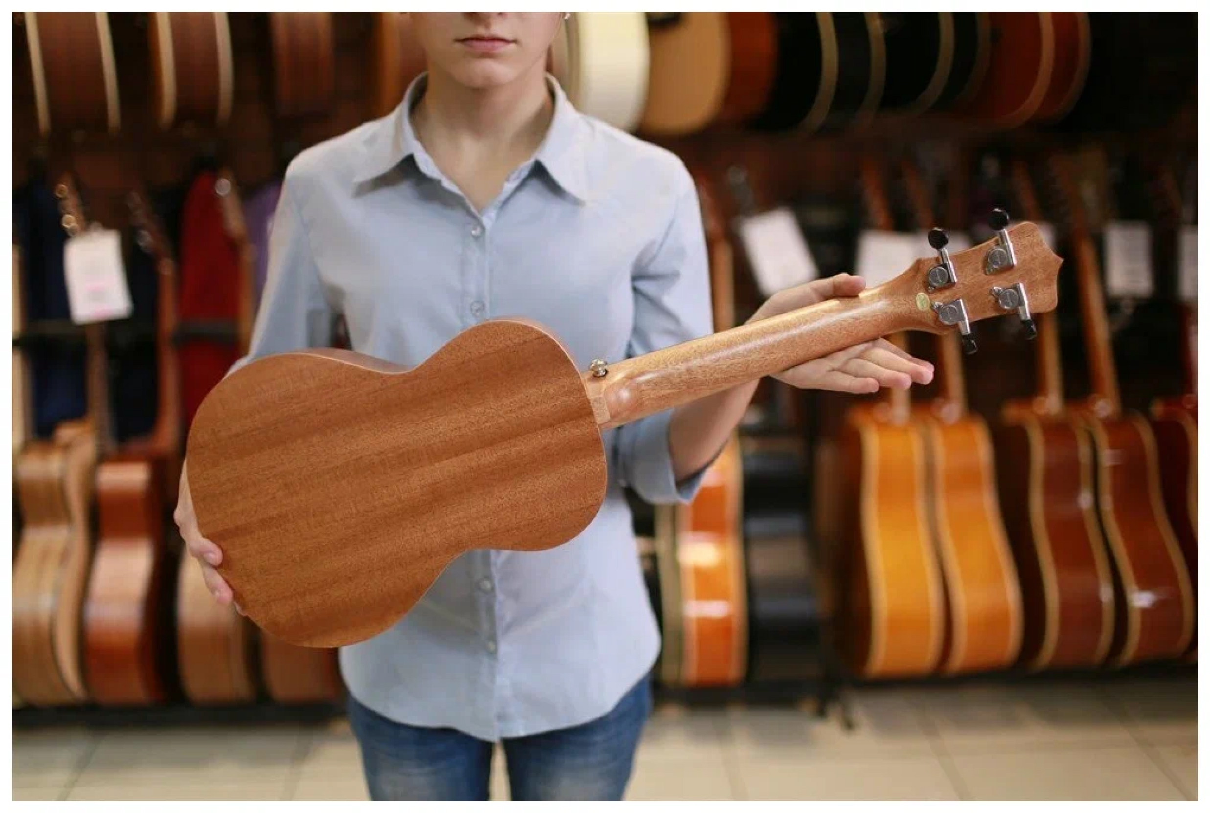Enya EUC-20 – гавайская гитара в корпусе размера концерт. Это укулеле отличного качества, при этом цена модели весьма демократична. В конструкции EUC-20 используются тщательно подобранные материалы и фурнитура. Это элегантный и удобный инструмент с красивым звучанием, который будет радовать Вас долгие годы. Верхняя, нижняя деки и обечайка гавайской гитары выполнены из древесины сапеле. В сочетании с крупным размером корпуса это обеспечивает прекрасные акустические свойства, насыщенный, глубокий, мощный, при этом достаточно мягкий звук, который подойдет для разных музыкальных направлений. Гриф – из красного дерева. Порожек – из натуральной кости. Накладка из черного дерева «Tech-Ebony» - гладкая, комфортная при игре, она идеальна для скоростной игры. Лады инкрустированы классическими точками. ENYA EUC-20 не только отлично звучит, но и элегантно выглядит в натуральном цвете дерева с матовым покрытием. Литые колки удобны в использовании и позволяют укулеле надежно держать строй, расположены симметрично - два сверху и два снизу. На инструменте установлены струны от производителя Enya, в комплекте с укулеле поставляется фирменный мягкий чехол.