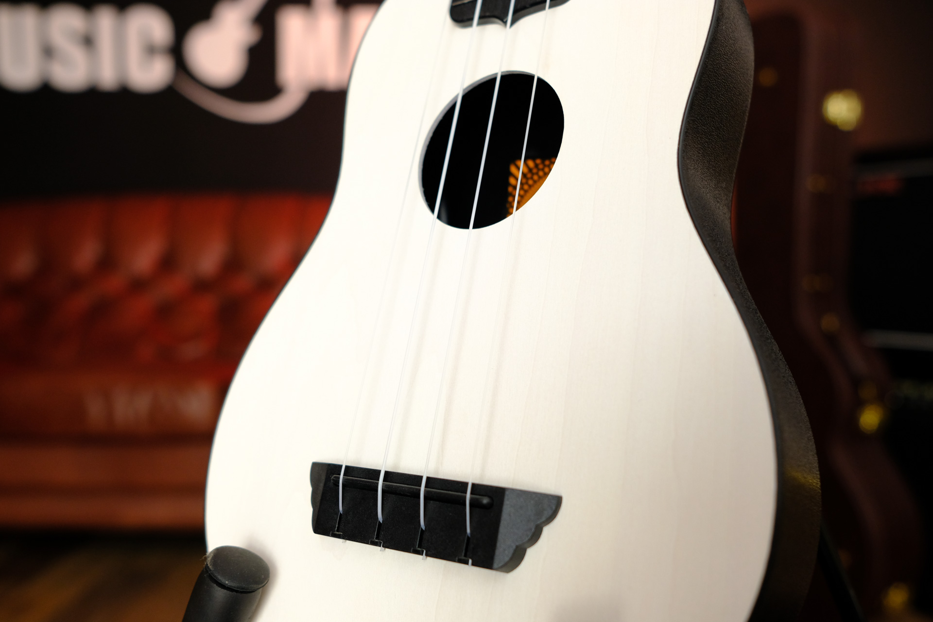 Яркий и насыщенный звук достигается благодаря особенностям конструкции - корпус укулеле сделан из технологичного композитного материала и имеет особую полукруглую форму, а резонирующая верхняя дека сделана из древесины.