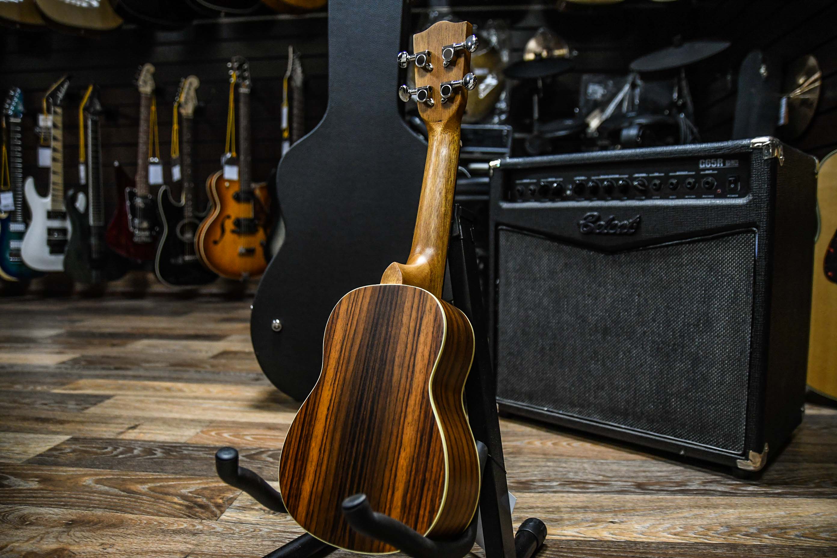 Гриф инструмента произведен из палисандра и дерева Нато (порода красного дерева), а корпус – из меранти, основной цвет которой и преобладает в палитре этой модели. Благодаря матовому натуральному покрытию легко поддается уходу и дольше сохраняет опрятный внешний вид. Звучание – звонкое и задорное, гораздо более чистое, чем у многих других моделей укулеле в этой же ценовой категории.